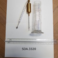 Un des crémomètres est en outre accompagné d'un thermomètre ("Nach Celsius"). Le lactoscope est accompagné d'une petite louche. Une des boîtes indique "2 Lactodensimètres, fragile"