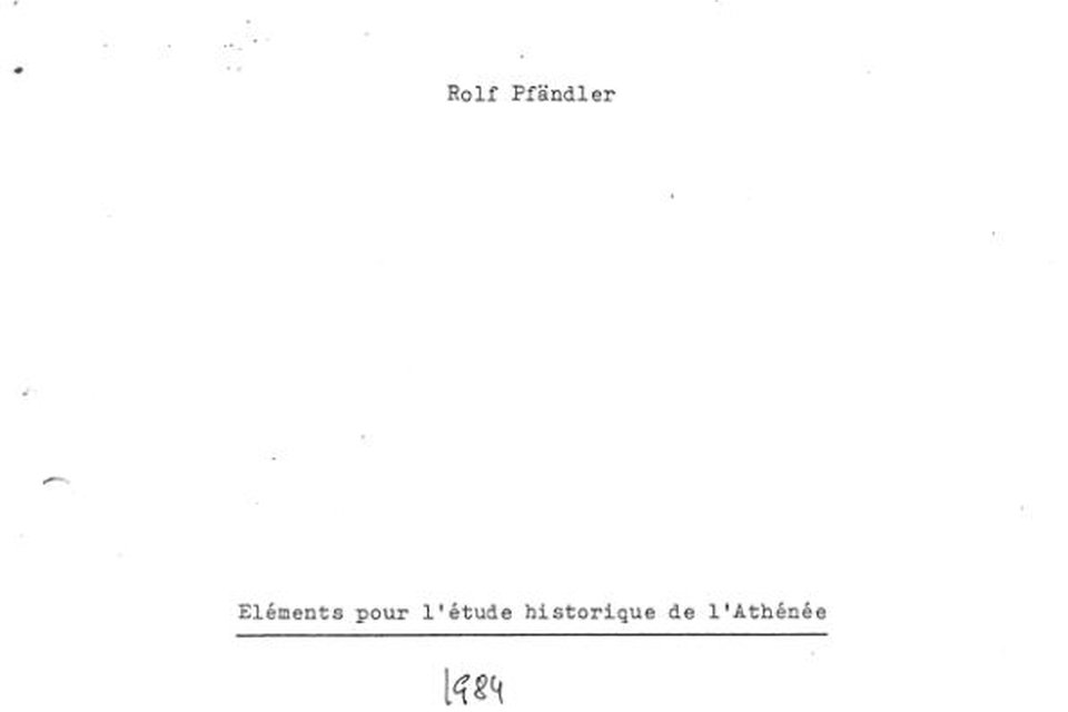 Rolf Pfländer, Éléments pour l'étude historique de l'Athénée